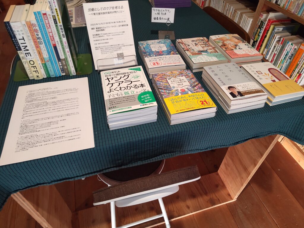 12月21日(日)のイベント「労働としてのケアを考える~千葉児童相談所裁判が問うこと」の講師である飯島章太さんが選んでくれた「ケアする人のケア」に関する本のコーナーがオープンしました!
