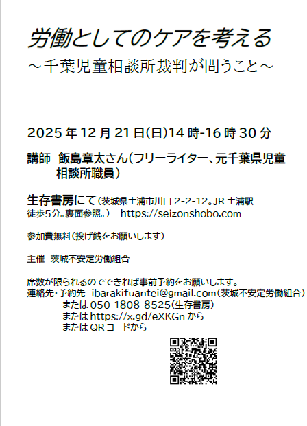 連絡先・予約先 ibarakifuantei@gmail.com(茨城不安定労働組合)