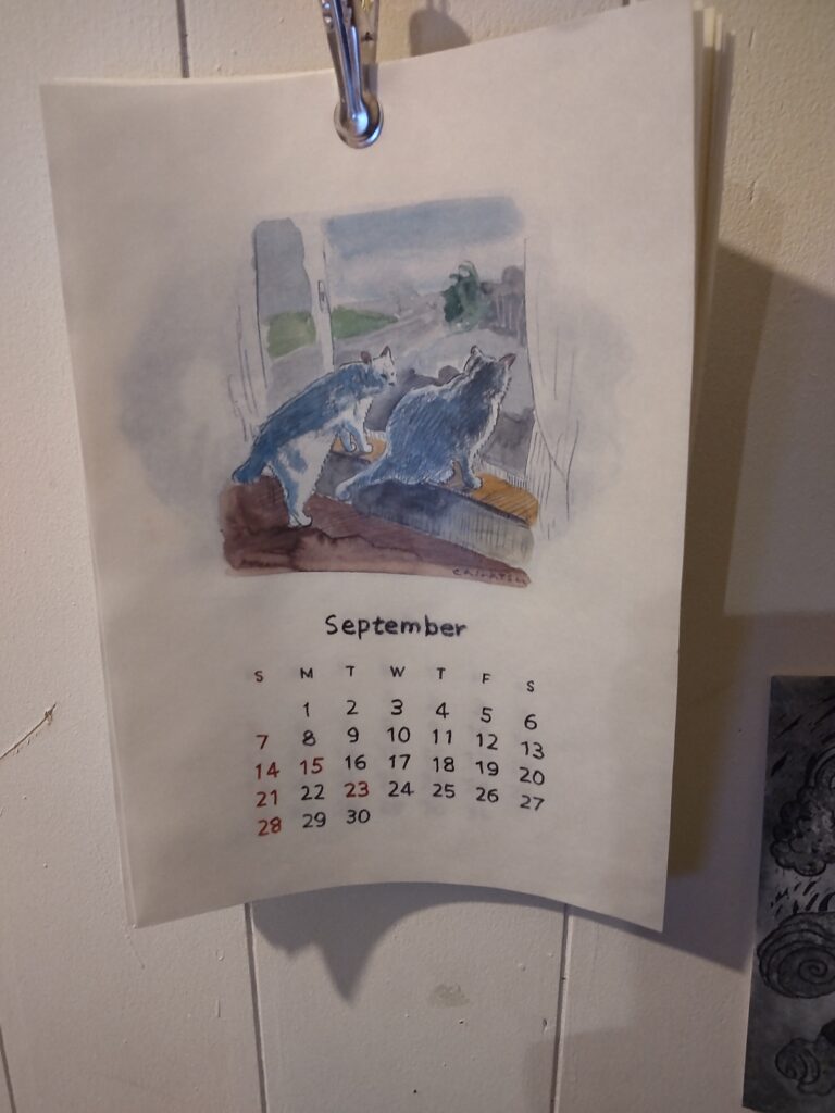 以前、9月の田中千夏さんカレンダーはなんでしょうと問いかけておきながら、答えを明かすのを引っ張りすぎました。白猫二匹でした。田中さんのご家族ですね。