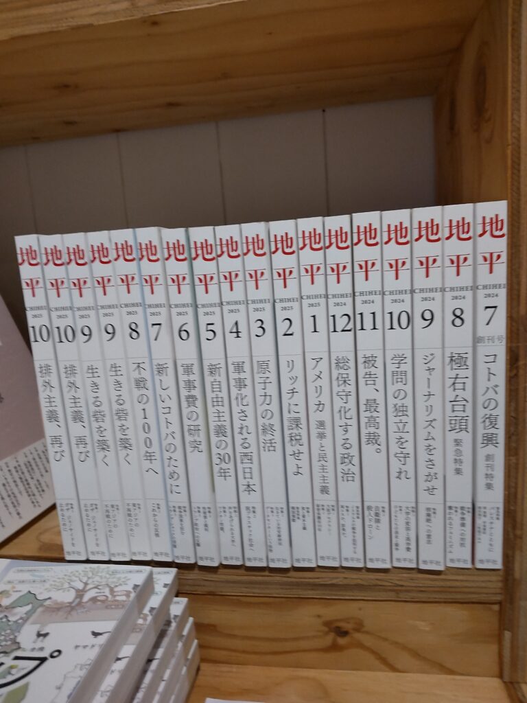 ①月刊『地平』2025年10月号。特集1「 排外主義、再び」特集2「ガザ ジェノサイドを止めるために」特集3「軍事化されるインターネット」
