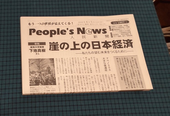 人民新聞』2026年4月5日号(通巻1867号)が届いています。